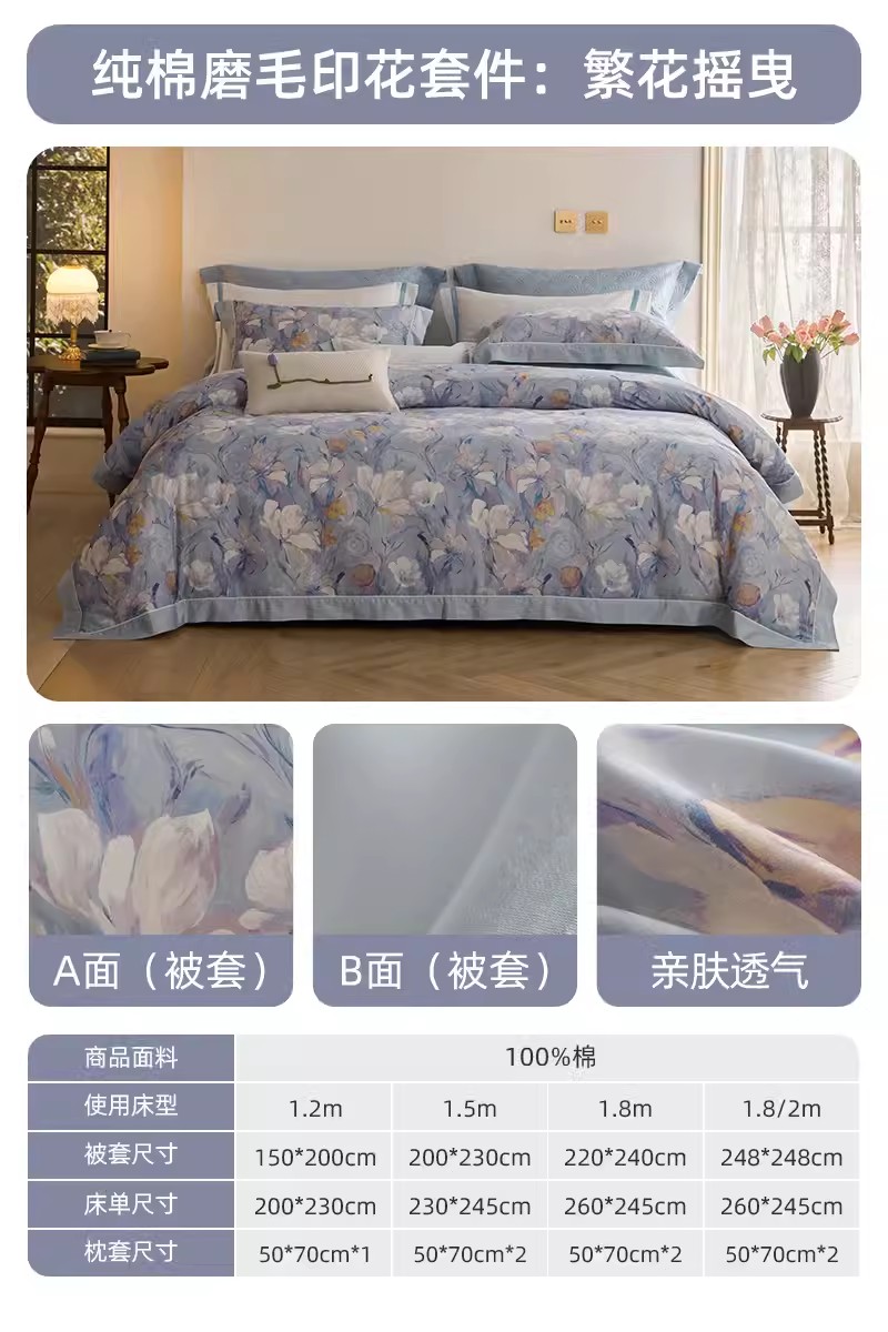 梦洁家纺磨毛四件套被套248x248床单全纯棉加厚秋冬高端2025新品