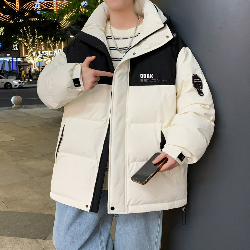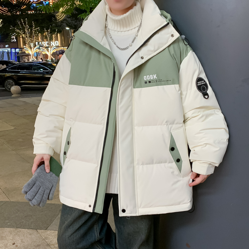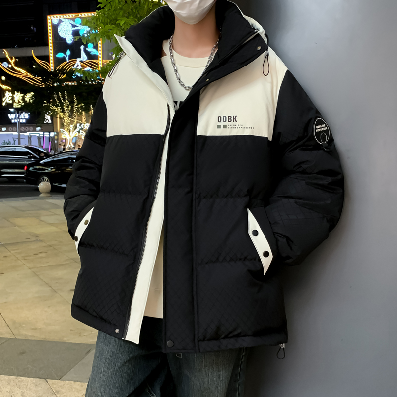 以纯撞色羽绒棉服男款连帽棉衣潮