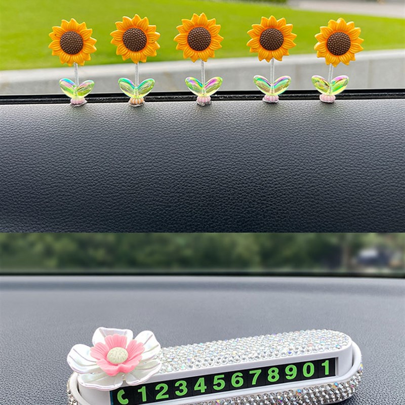 2024新款向日葵花朵车载摆件中控台摇头可爱花R花车内装饰用品摆