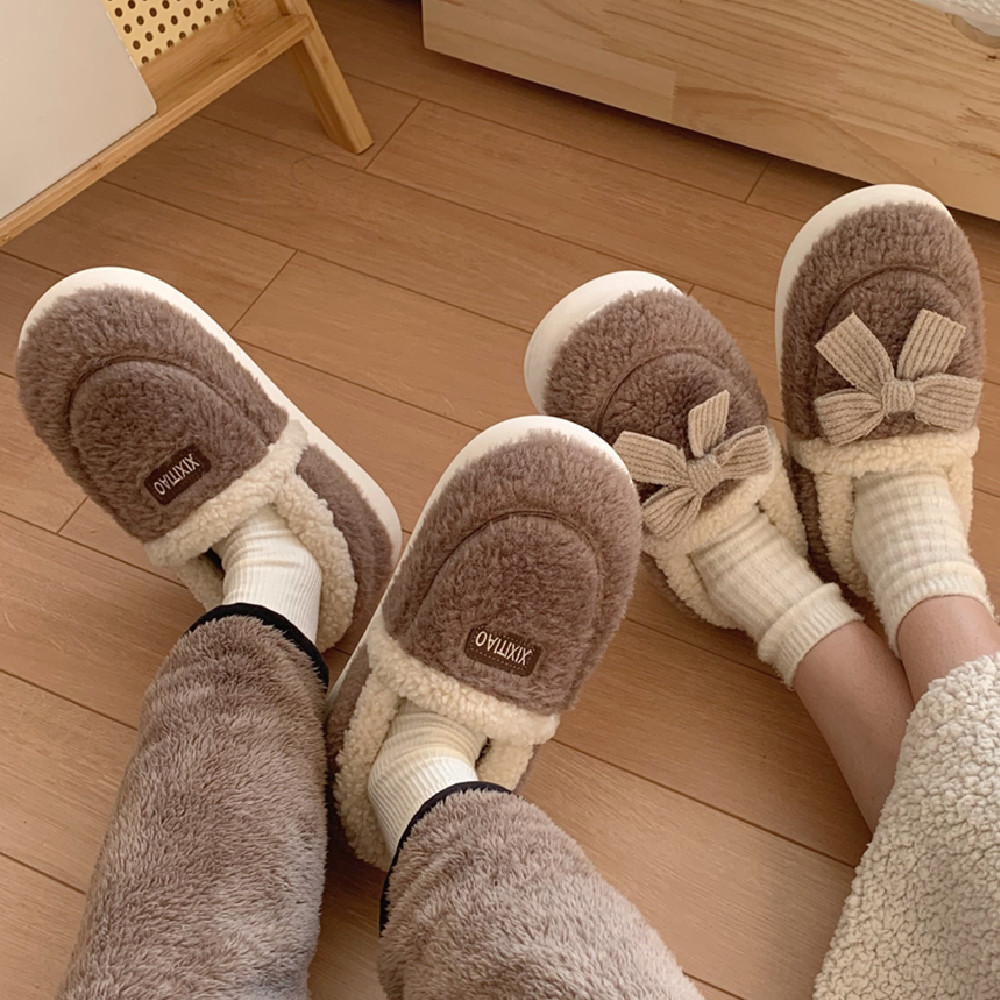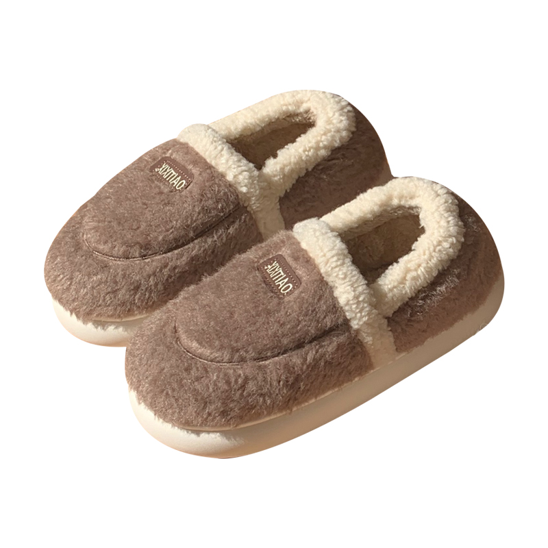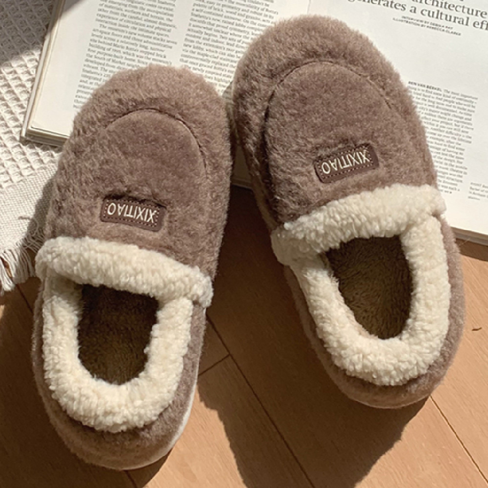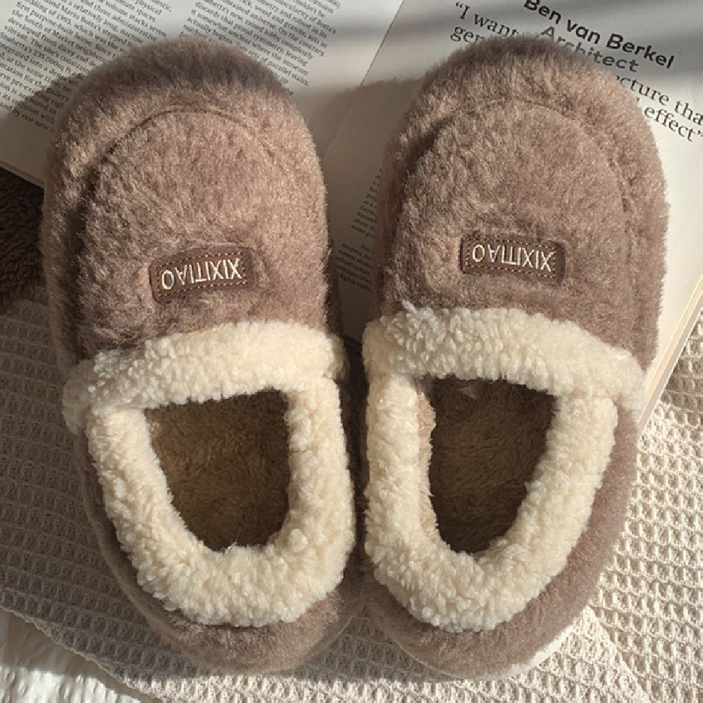 细细条 男士居家包跟棉拖鞋冬季情侣室内用时尚防滑保暖毛毛鞋ins