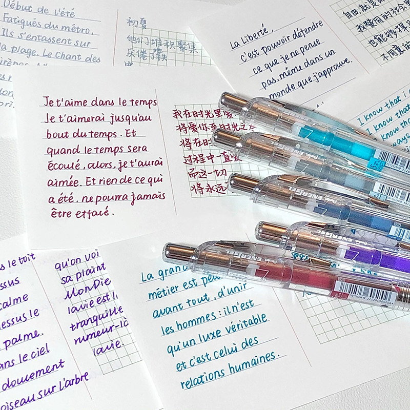 日本pentel派通速干中性笔BLN75透明杆彩色0.5按动学生用学霸刷题黑色考试水笔勃艮第红松石绿签字笔日系ins