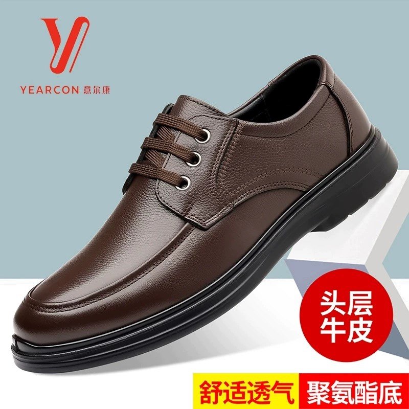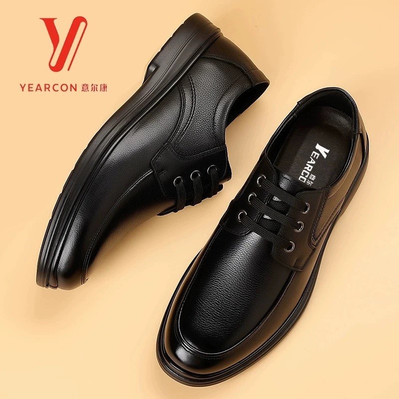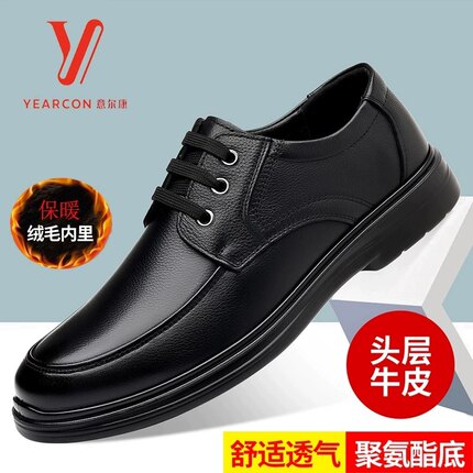 意尔康男鞋秋冬季真鞋商务休闲鞋正装加绒皮鞋软皮软底保暖爸爸鞋