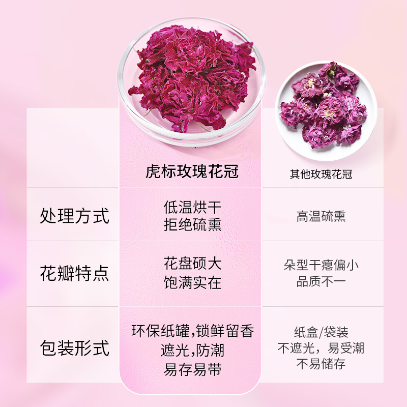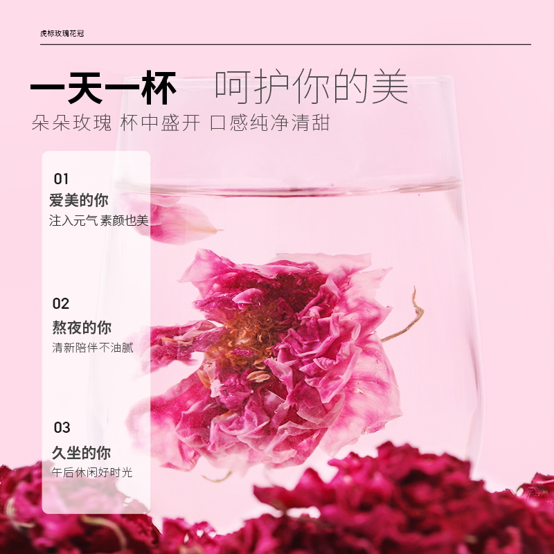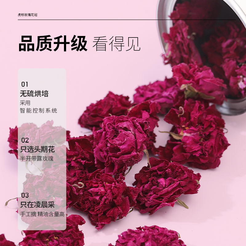 香港虎标玫瑰花冠茶大朵平阴重瓣干墨红玫瑰花茶代用花茶泡水茶叶