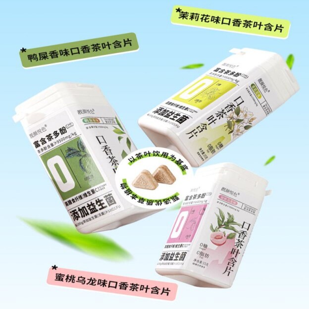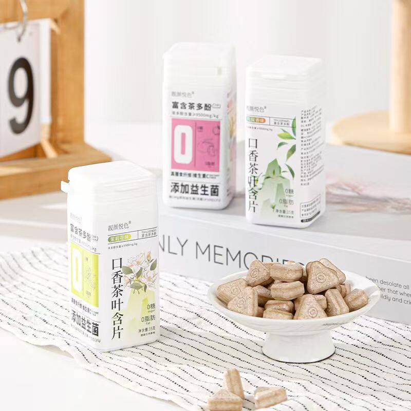 口香茶叶含片0蔗糖0脂肪益生菌茶多酚清新口气持久留香压片糖果