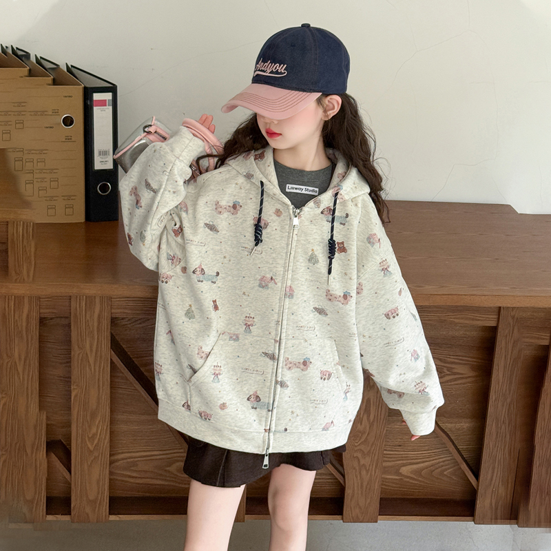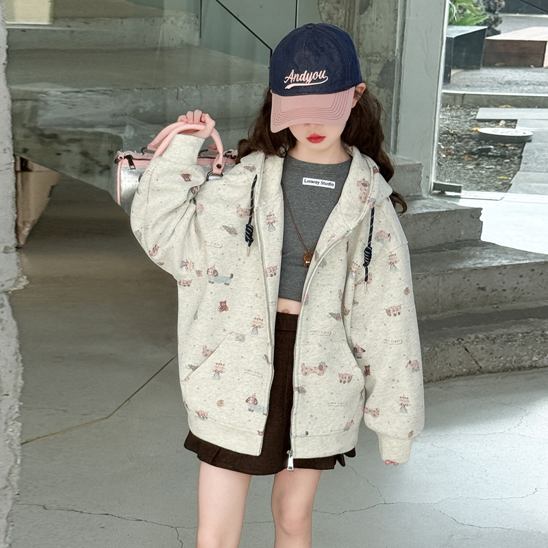 女童外套春秋装2025新款洋气儿童休闲卫衣秋季女大童好看连帽上衣