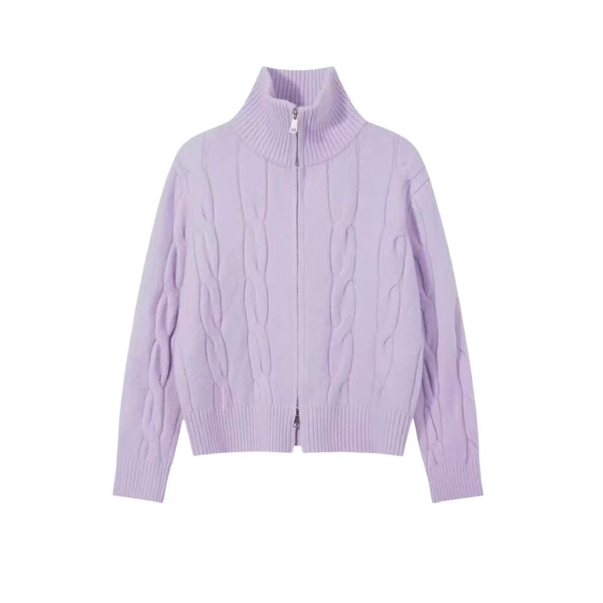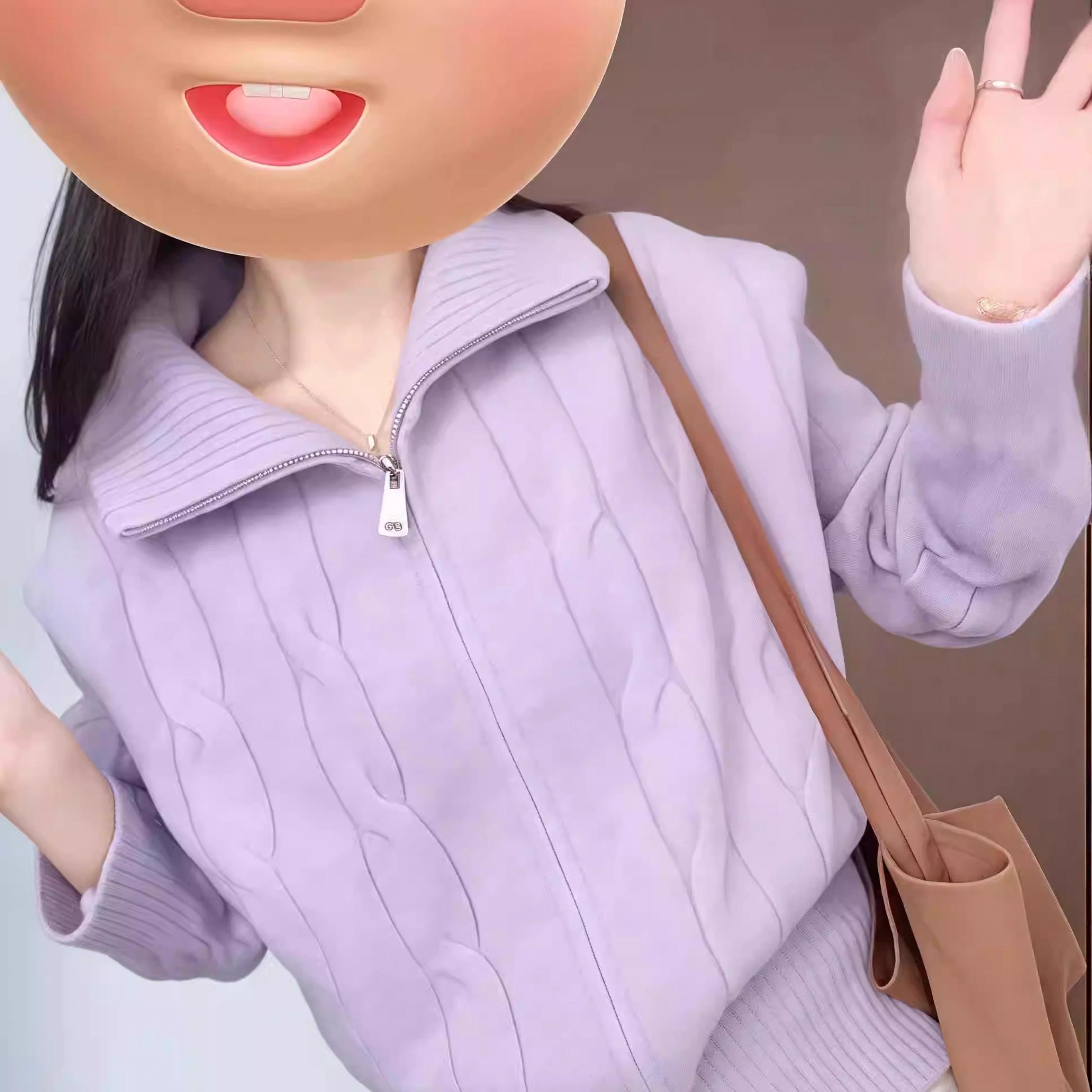 紫色麻花拉链翻领毛衣外套女款2025新款冬季内搭高级感小个子上衣