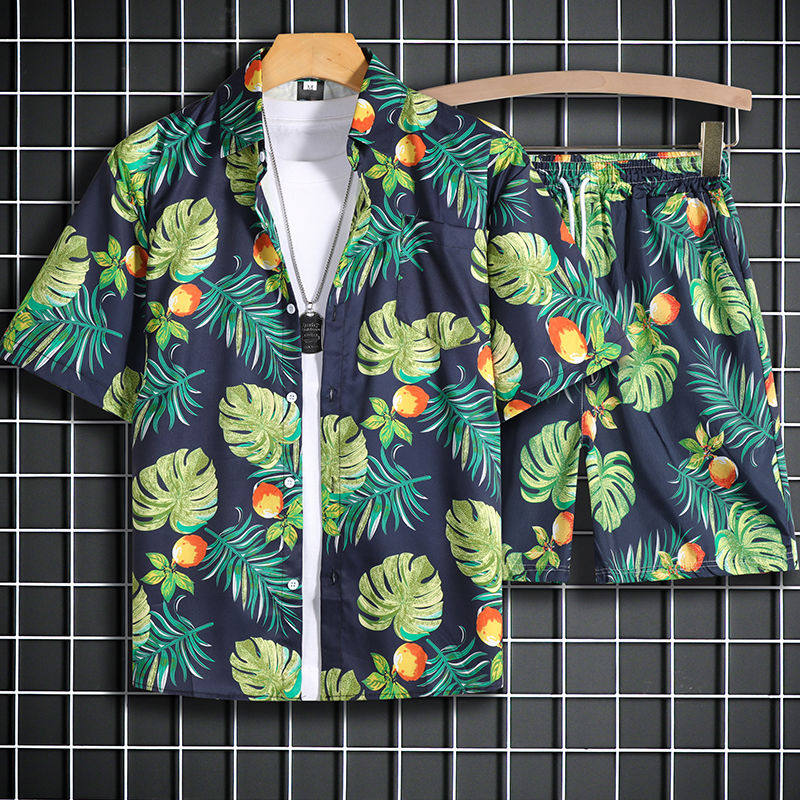 夏日岛服海南三亚夏威夷衬衫男沙滩短裤情侣款套装潮流清凉海滨风