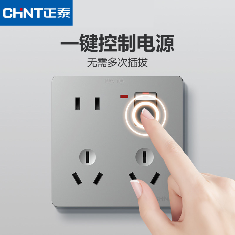 正泰一开八孔86型家用厨房墙壁六孔五孔10孔多功能带开关插座面板