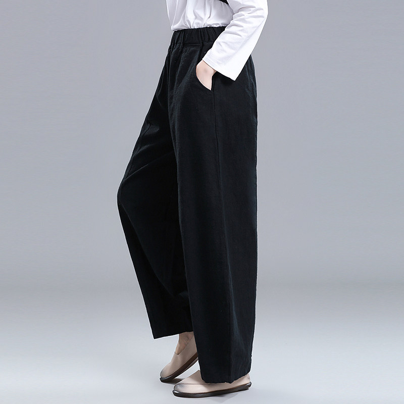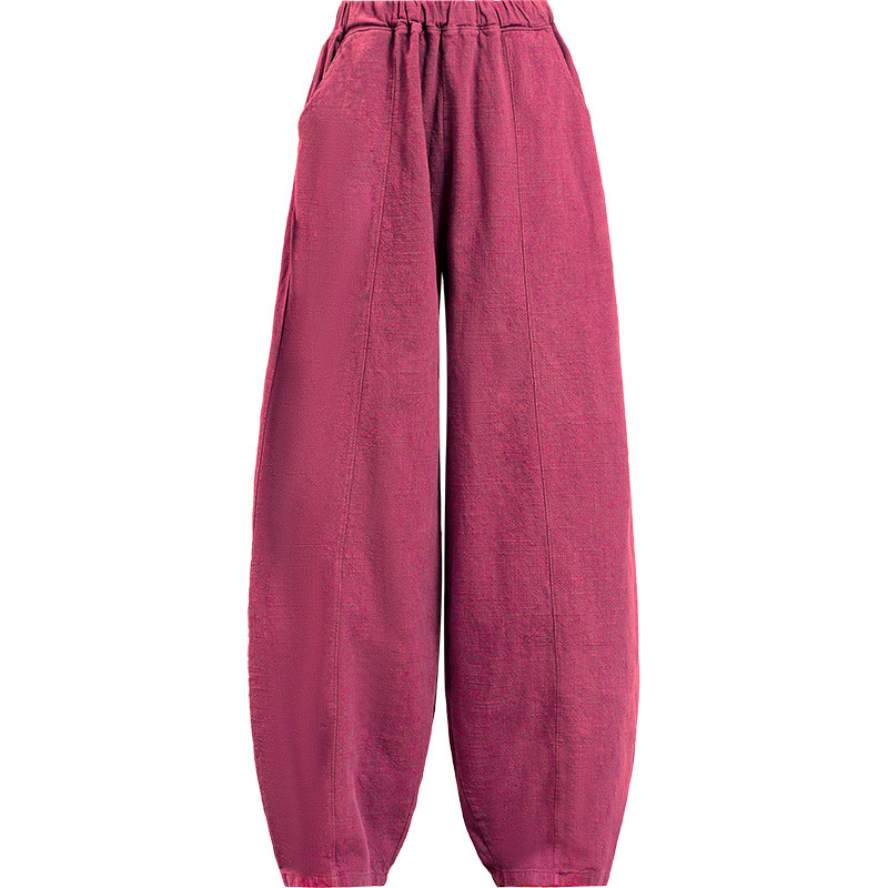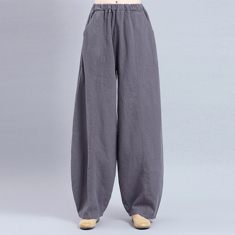 苎麻阔腿灯笼裤女春秋萝卜裤休闲裤宽松复古棉麻老爹裤高腰哈伦裤