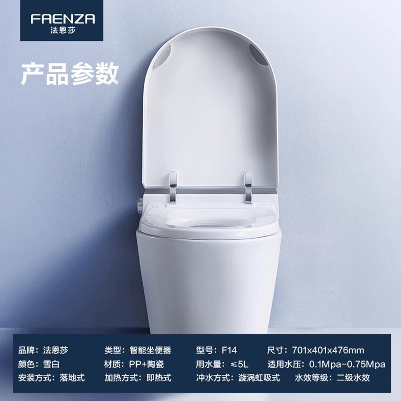 法恩莎卫浴智能马桶低压虹吸式冲水自动抗菌即热家用坐便器F14