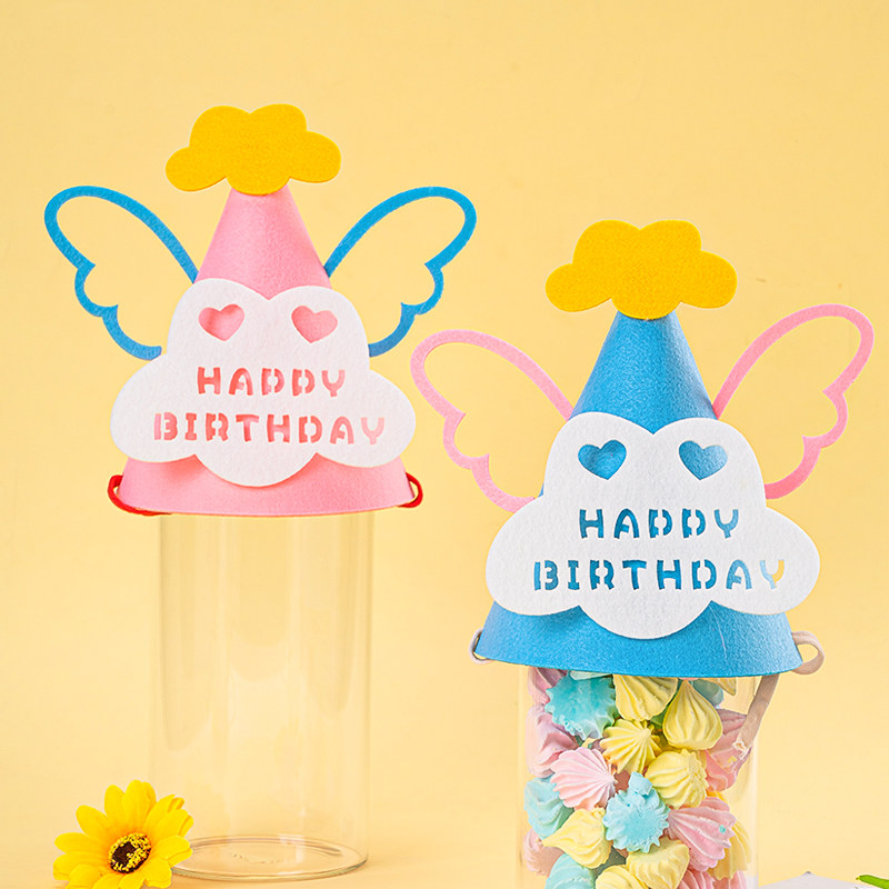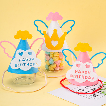 网红可爱毛毡生日帽天使翅膀帽子儿童宝宝周岁派对生日宴拍照道具