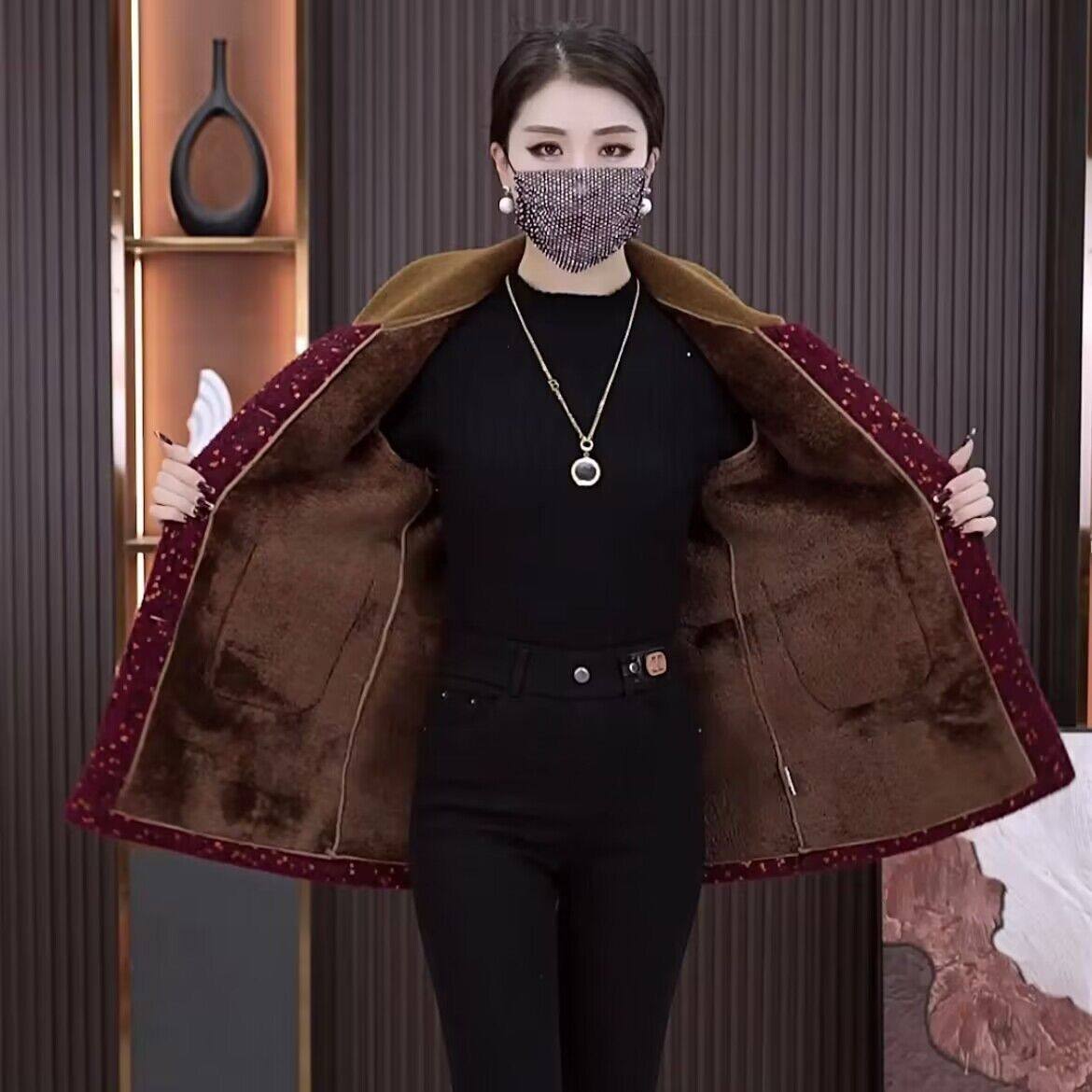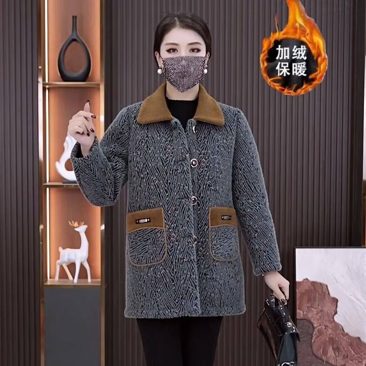 秋冬季中长款气质减龄毛呢外套女新款中老年妈妈加绒加厚洋气上衣