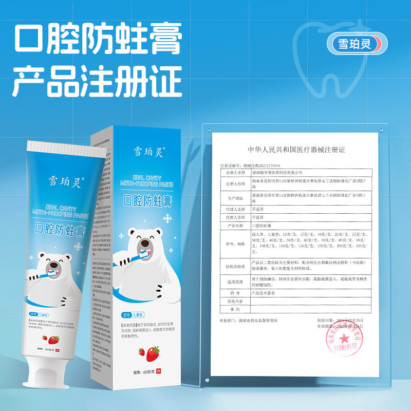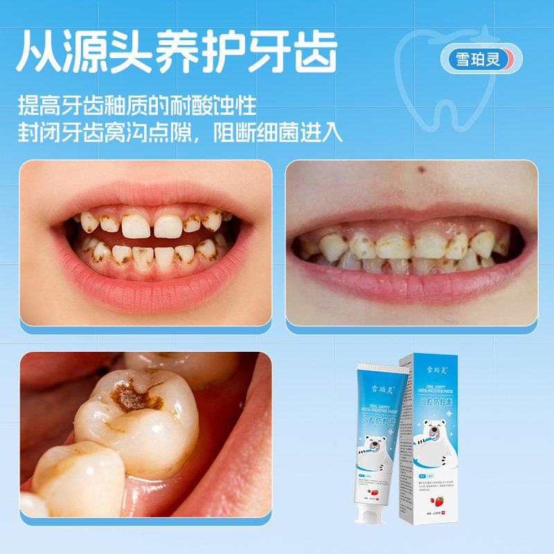 雪珀灵儿童口腔防蛀膏含氟防蛀防龋齿3岁以上幼儿非牙膏不可吞服