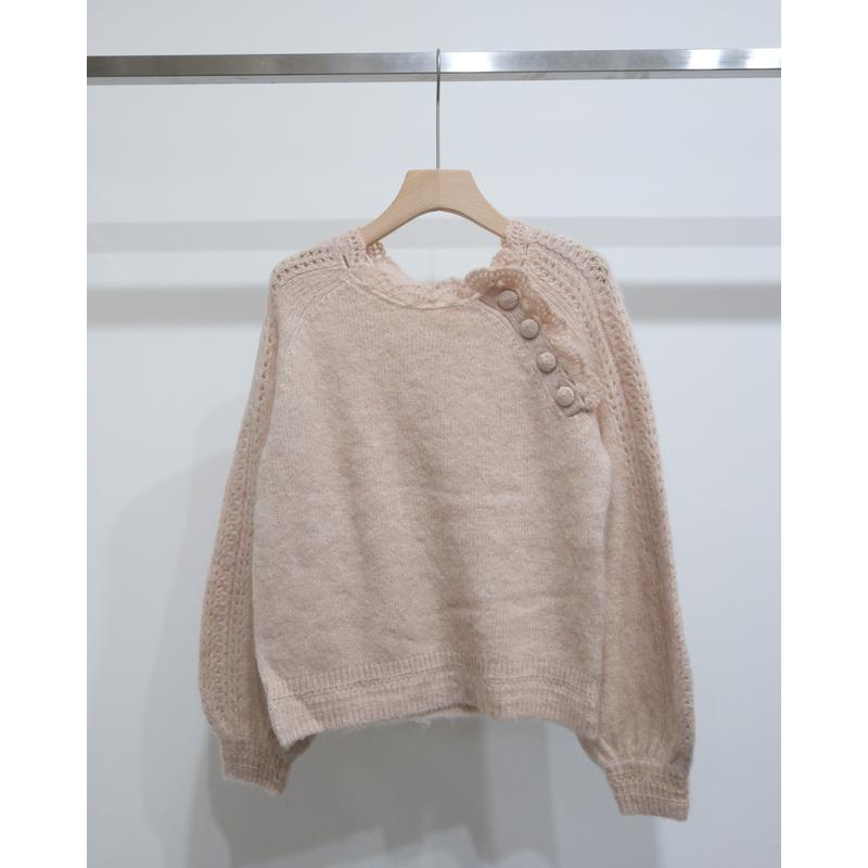 2025秋季新款镂空灯笼袖毛衣圆领套头女宽松慵懒风针织衫长袖上衣