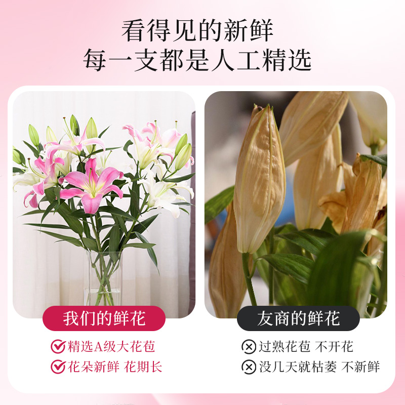 云南鲜花 基地直发顺丰 新鲜多头重瓣香水百合冰美人水养插花花卉