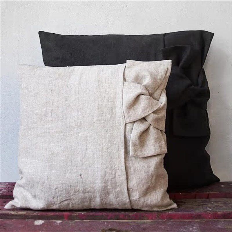 法国亚麻 d小众设计师款 法式打结纯麻沙发抱枕套 靠垫套 不含芯