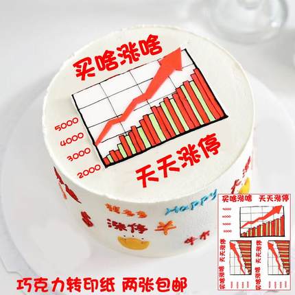 买啥涨啥天天涨停股票巧克力转印纸生日蛋糕烘焙装饰两张包邮