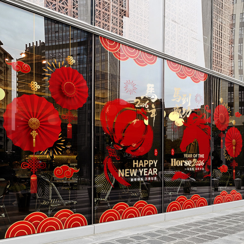 新年装饰窗花马年静电贴春节创意中国风灯笼窗贴2026橱窗玻璃贴纸