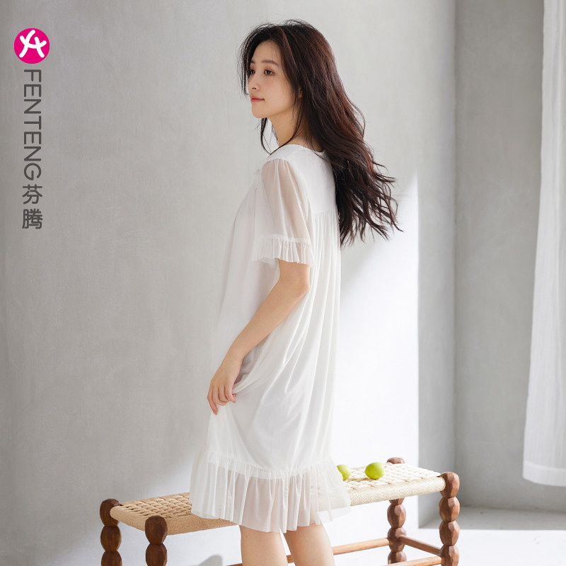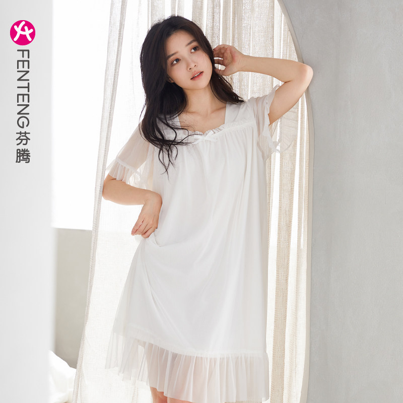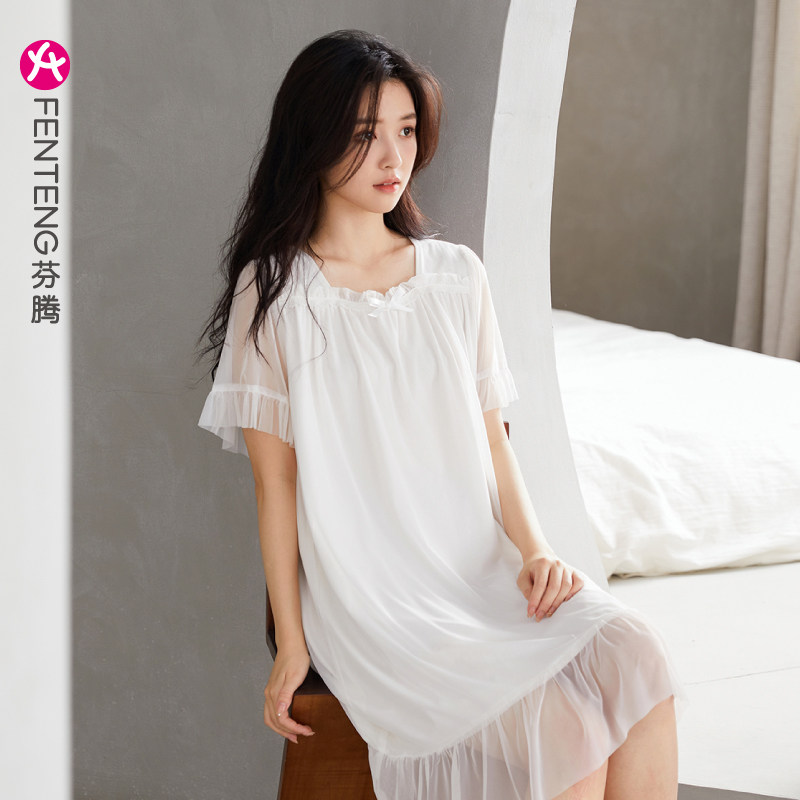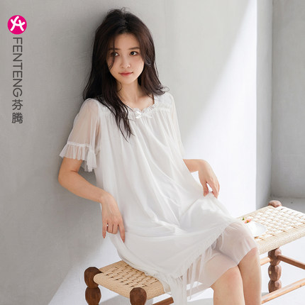 芬腾白色连衣裙女夏季法式性感蕾丝冰丝薄款睡裙夏款气质仙女裙子