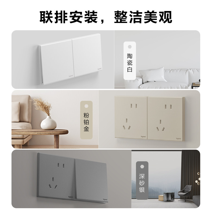 罗格朗淳逸系列陶瓷白色一开五孔16a三孔墙壁USB插座带开关面板