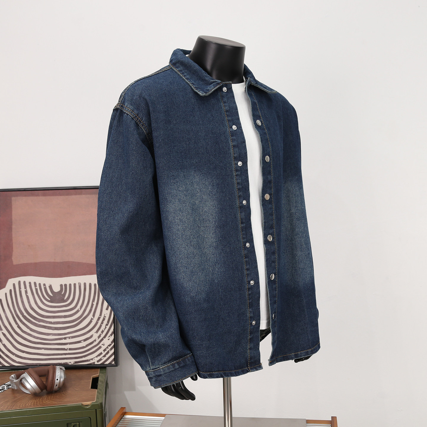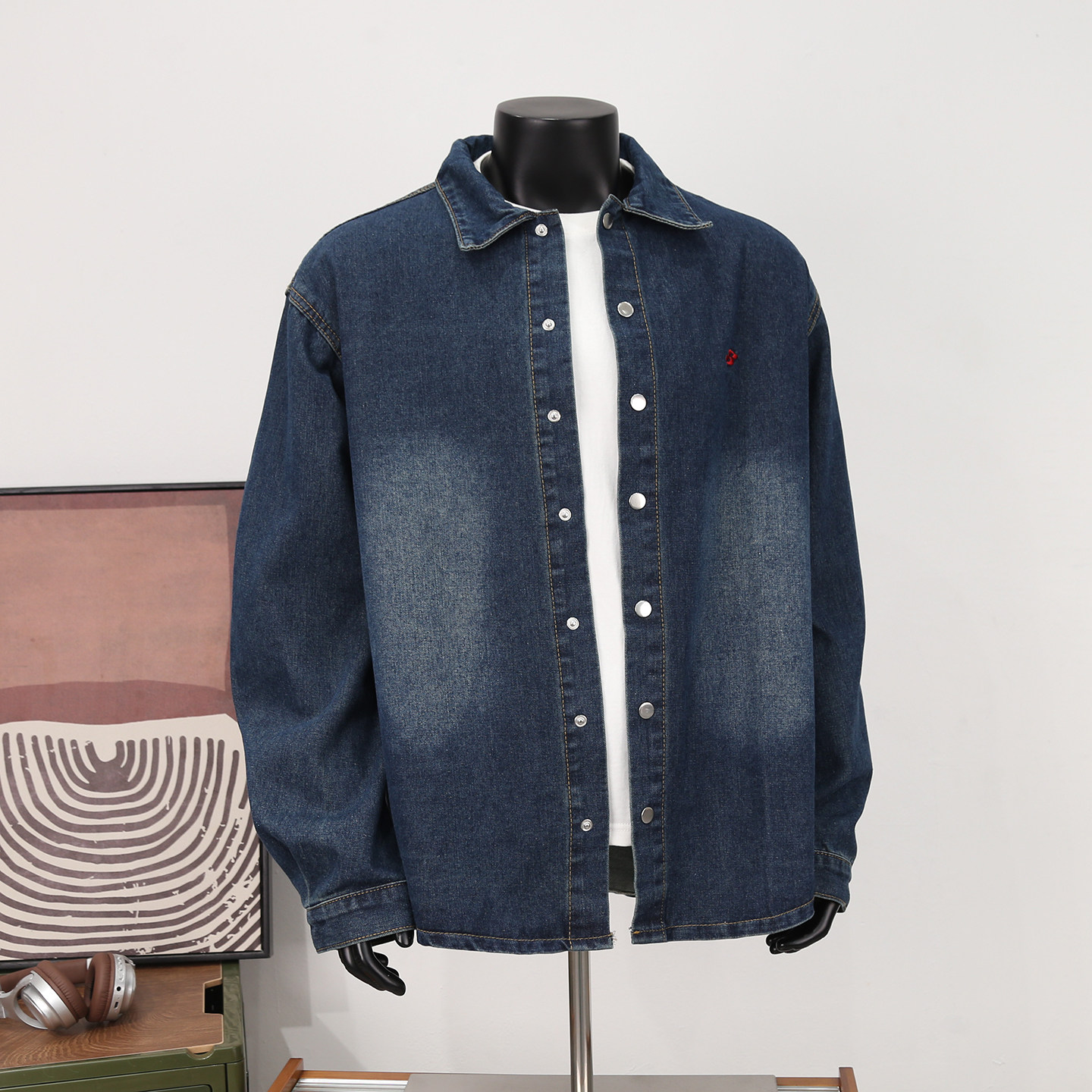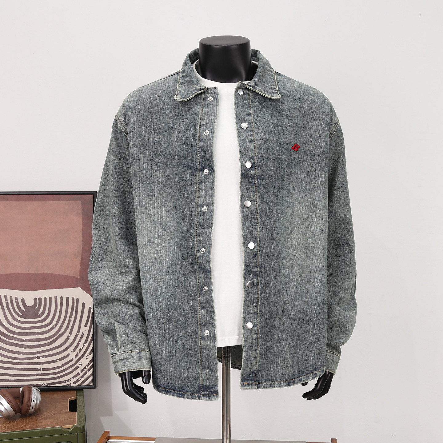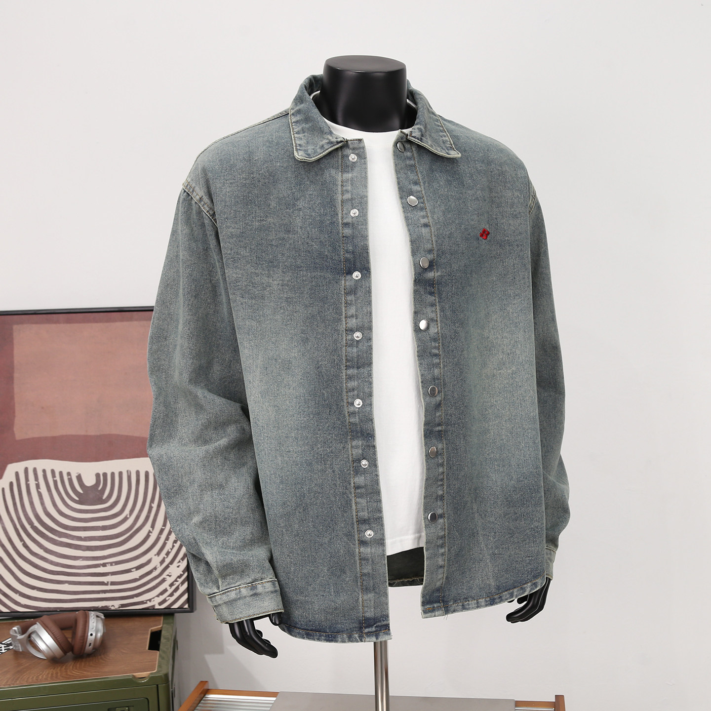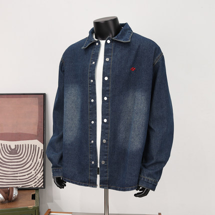 水洗做旧刺绣牛仔衬衫外套男士春