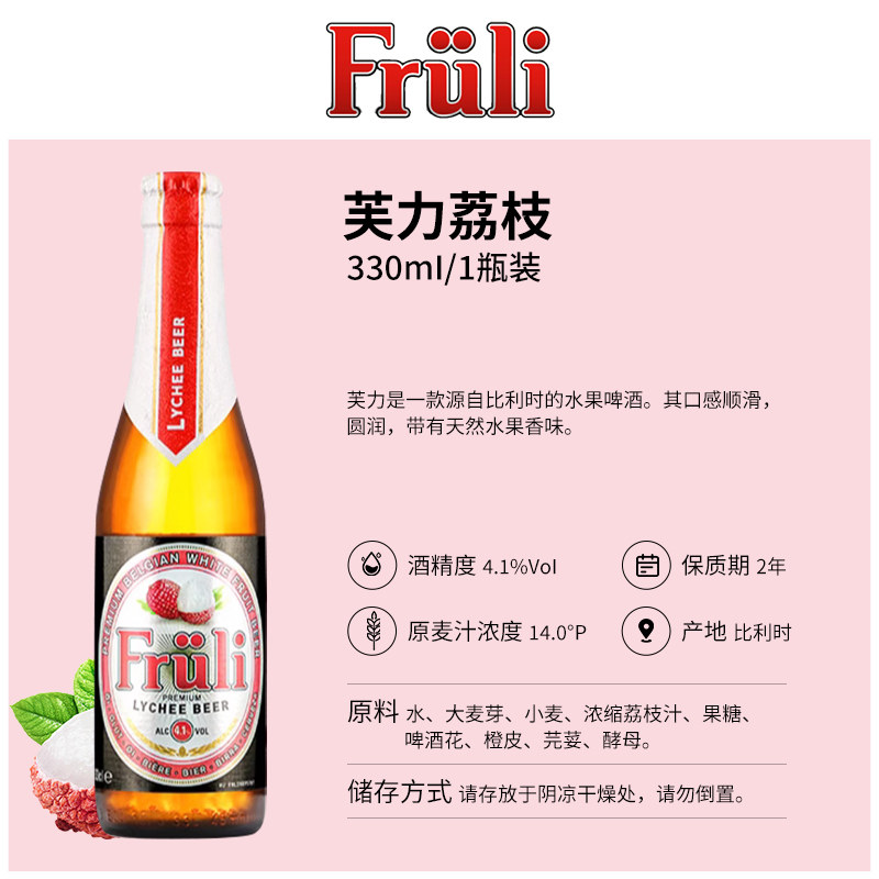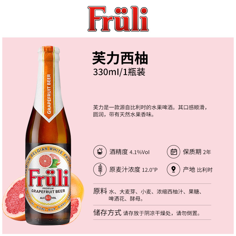 Fruli芙力啤酒比利时进口啤酒西柚/草莓/荔枝330ml女士果味啤酒