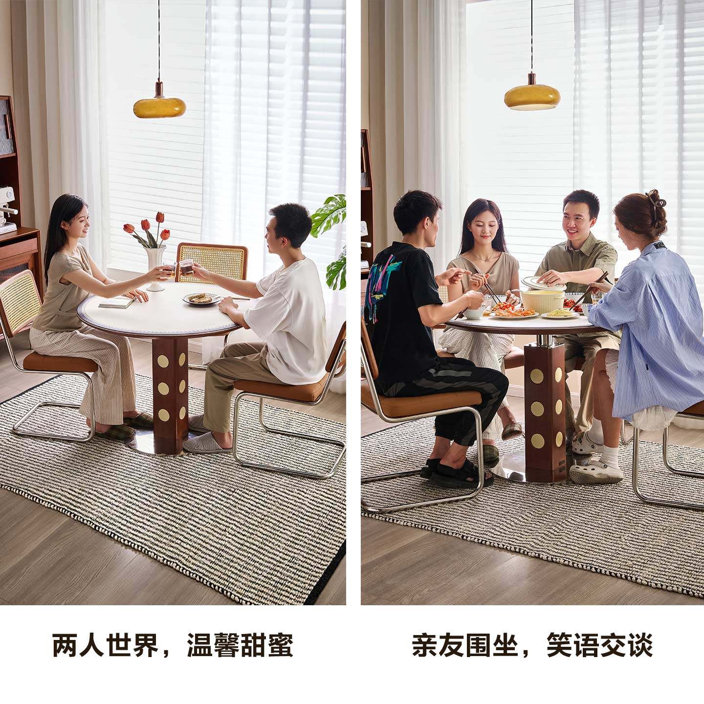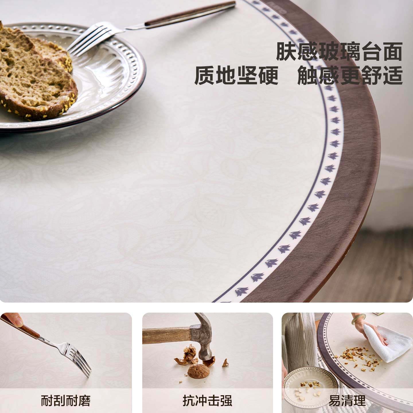 全友家居中古风玻璃圆餐桌