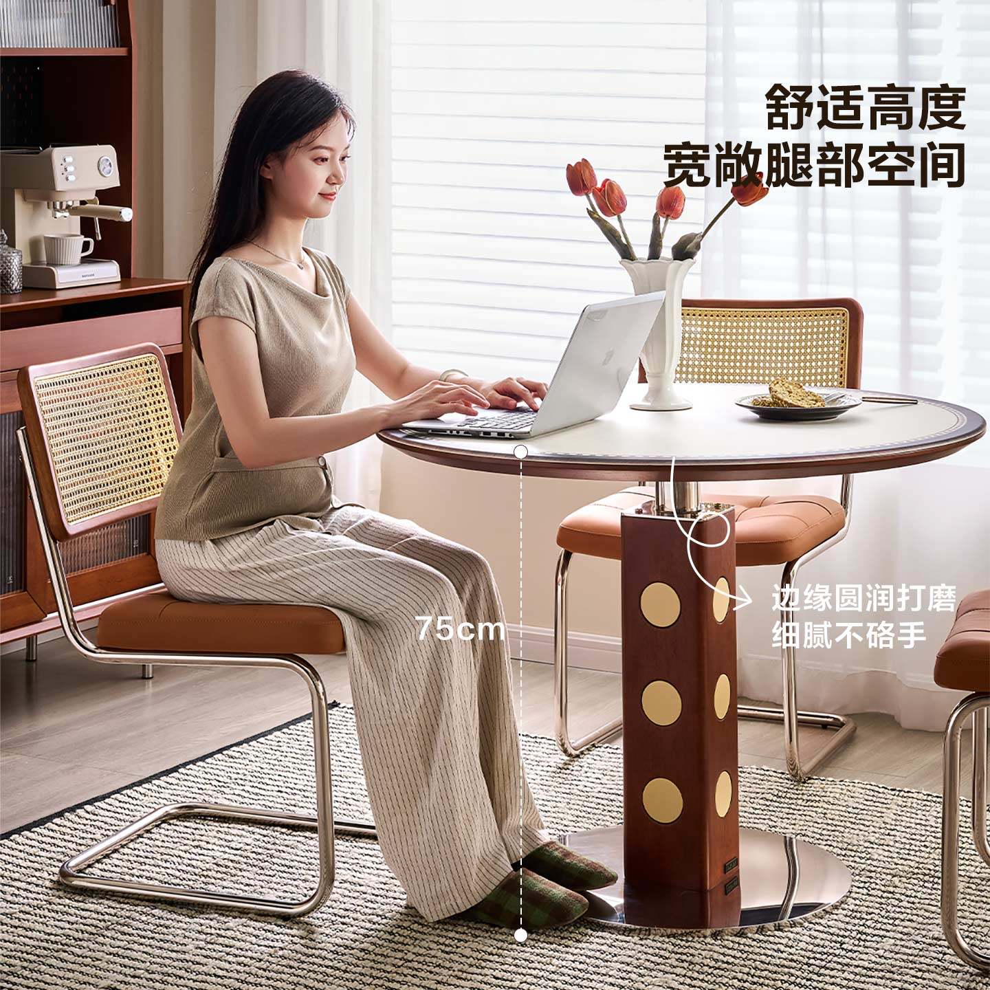 全友家居中古包豪斯风圆形钢化玻璃餐桌客厅家用小户型高级感饭桌