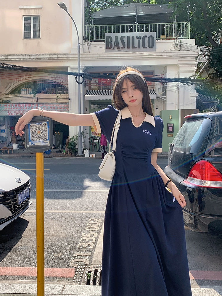 polo领连衣裙女春夏季A字长裙子