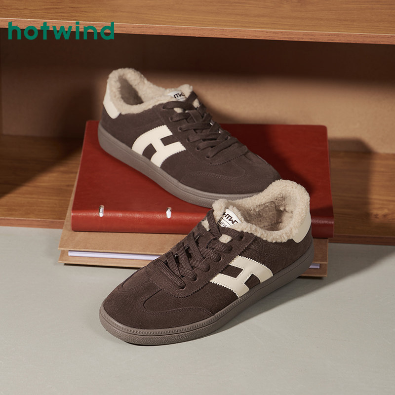 热风男鞋2025年冬季新款男士时尚休闲鞋保暖舒适加绒百搭板鞋子
