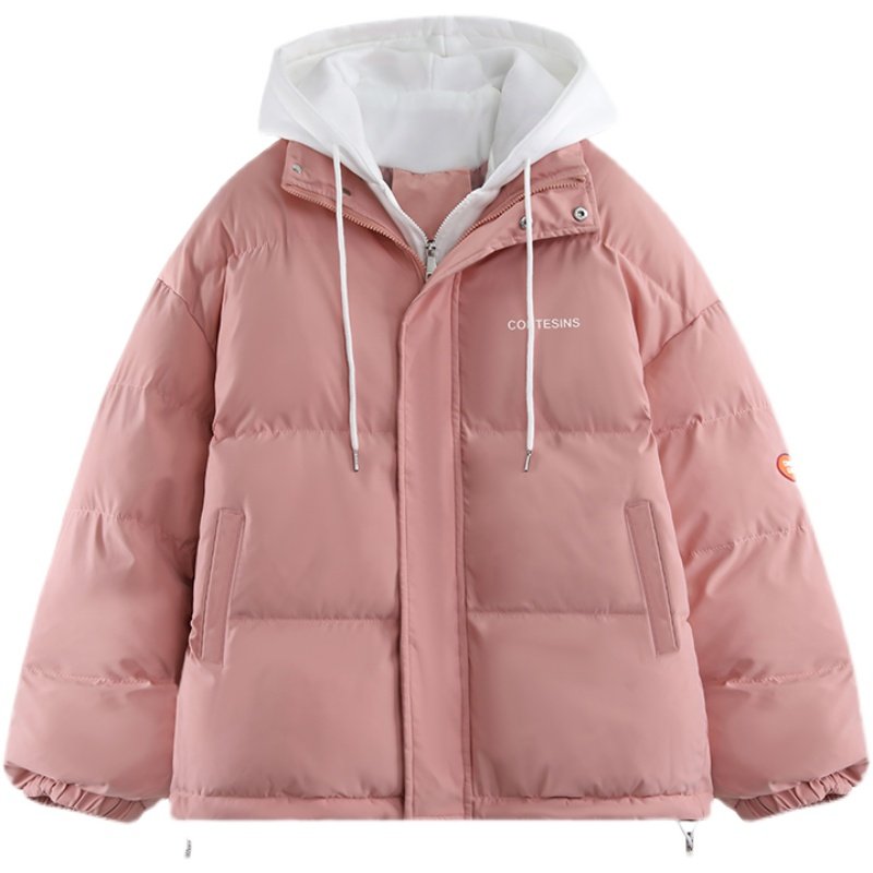 加厚假两件棉衣女宽松大码新短款学生情侣羽绒棉服冬季面包服外套
