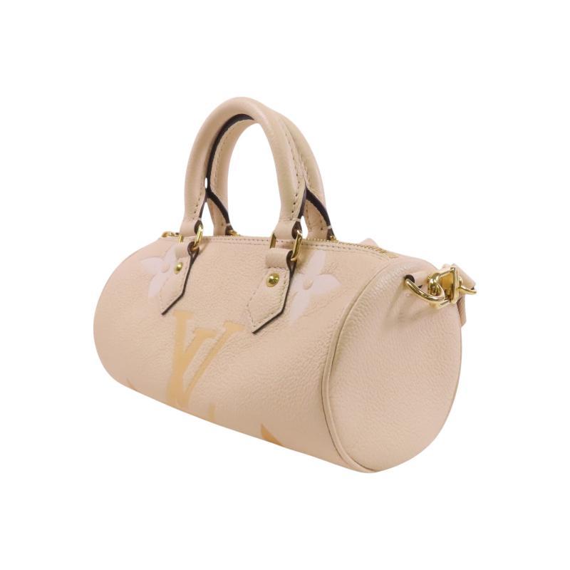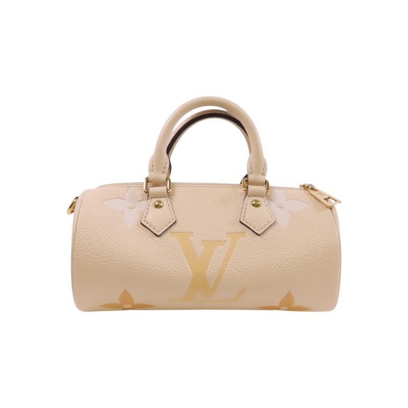 中古LV路易威登女包A级95新Papillon圆筒包牛皮斜挎包浅褐色HK