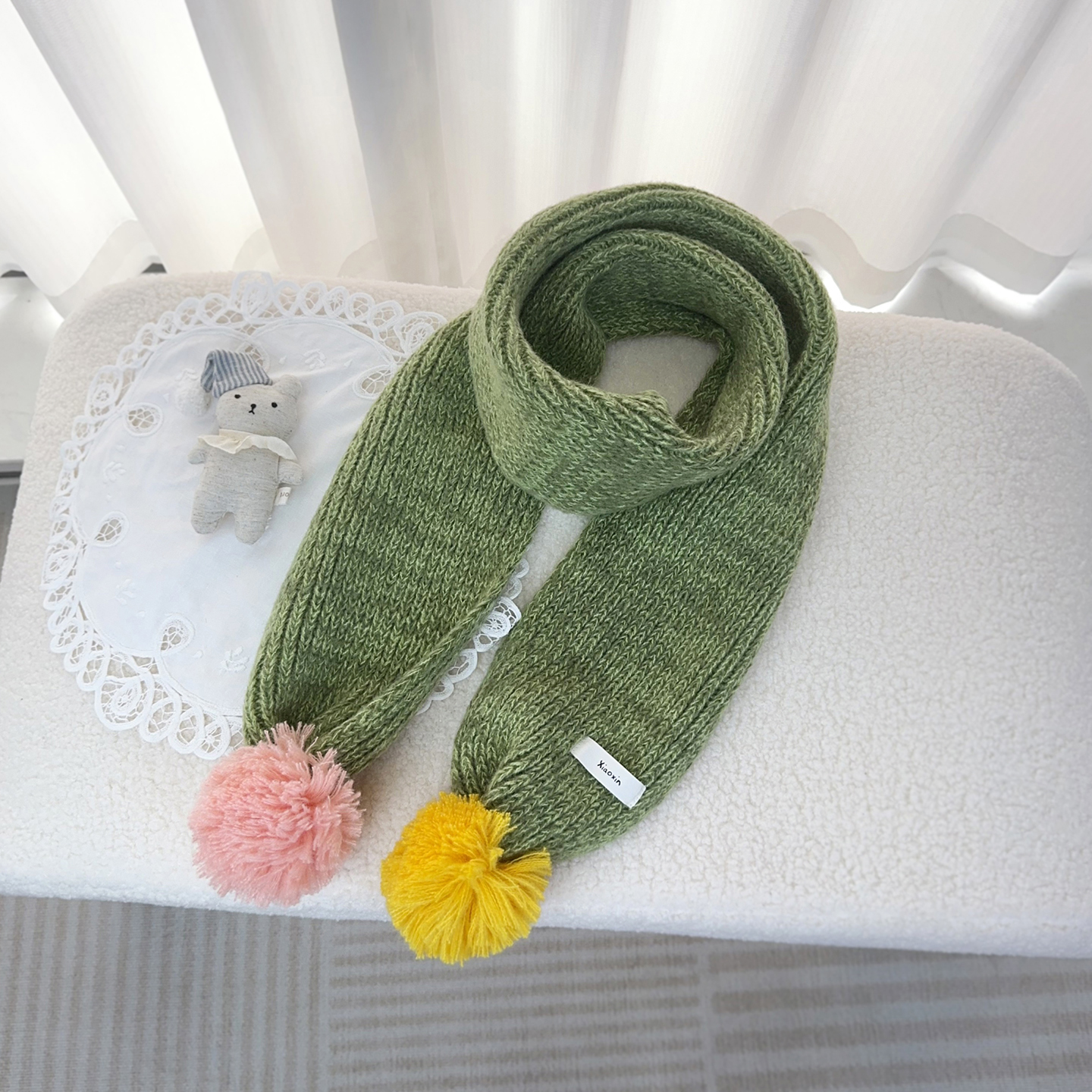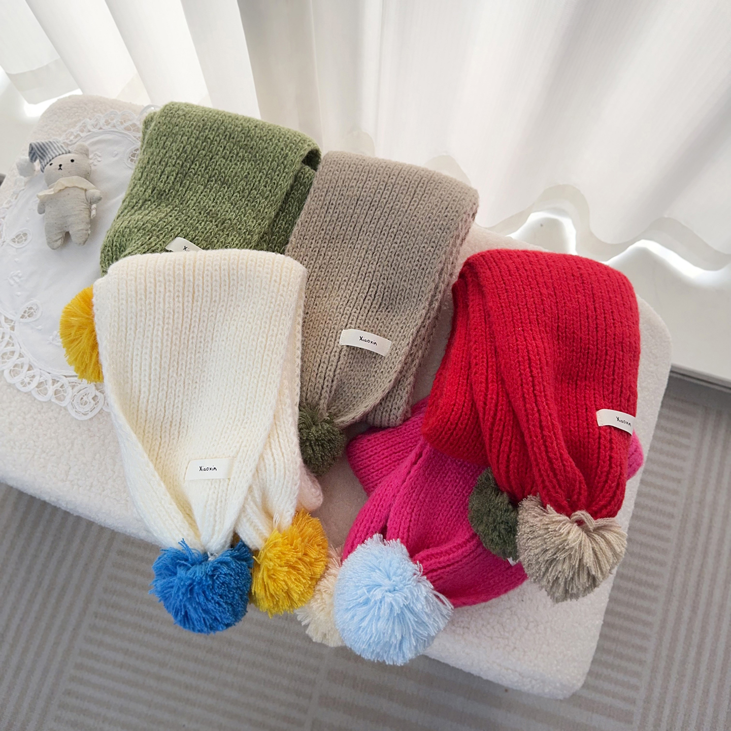儿童围巾男女孩彩球亮色长围巾冬季2025新款针织毛线围脖保暖脖套