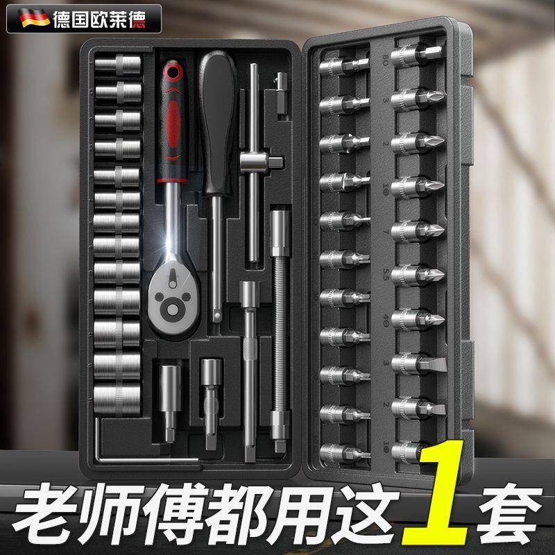 欧莱德汽修组合工具套装多功能套筒棘轮扳手家用维修工具小飞46件
