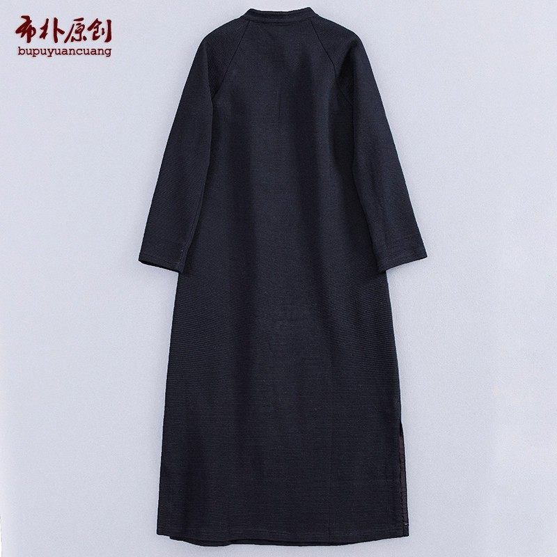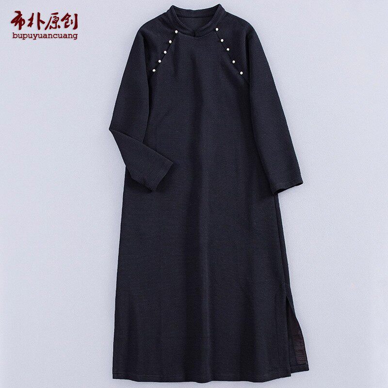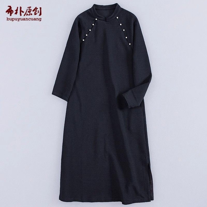 布朴家作2026春秋款中式改良旗袍式过膝显瘦黑色旗袍连衣裙休闲裙