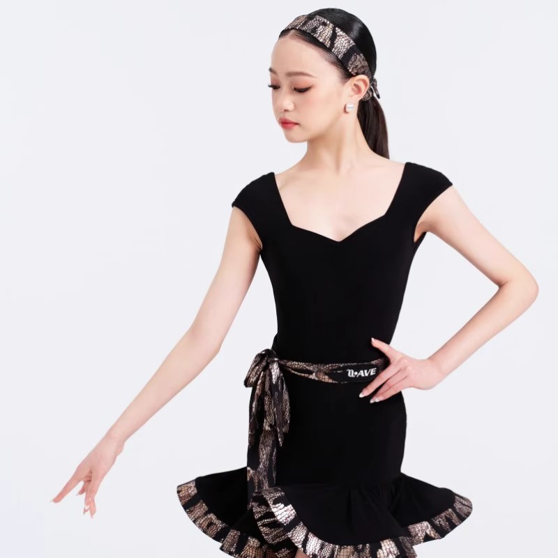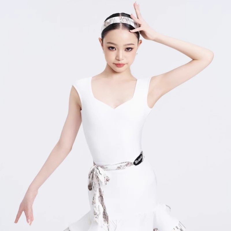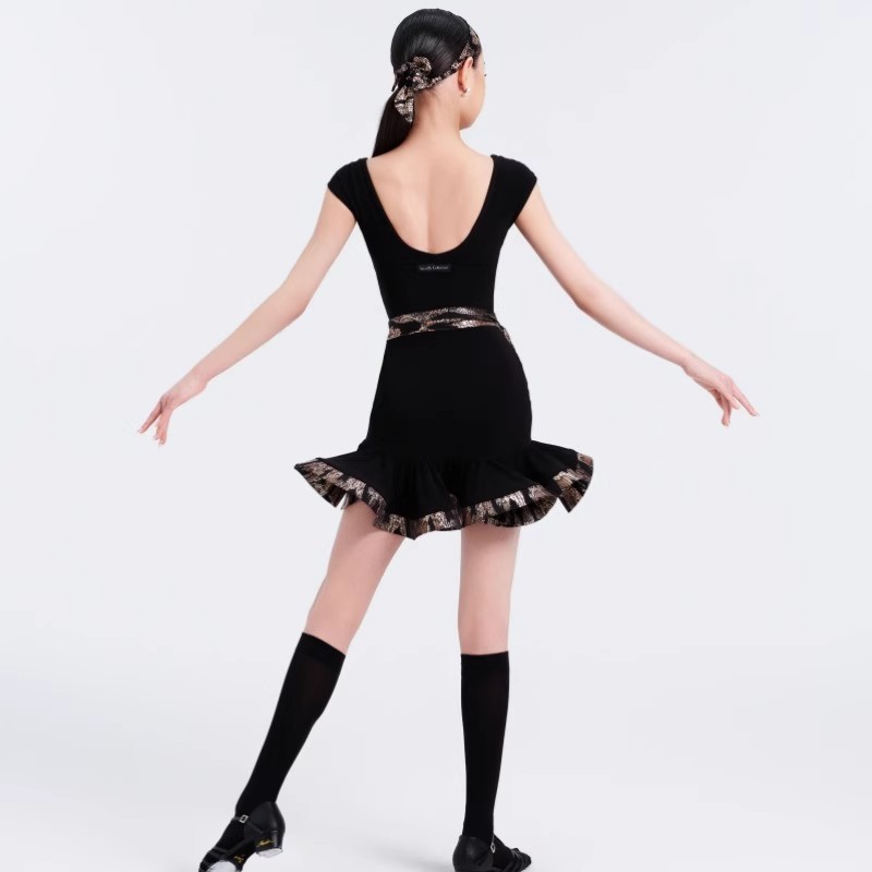 2025夏季新款少儿拉丁舞桃心领无袖露背上衣分体蛇灵鱼骨裙练习服