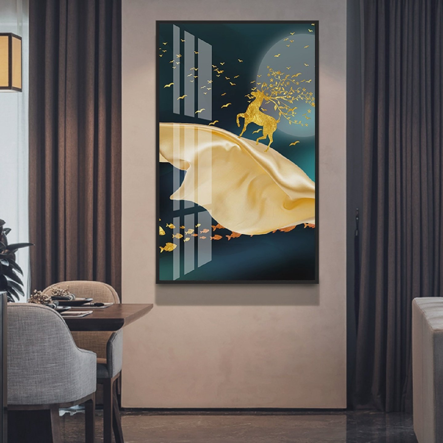 北欧玄关装饰画轻奢挂画简欧客厅过道走廊壁画进门大气竖版墙壁画