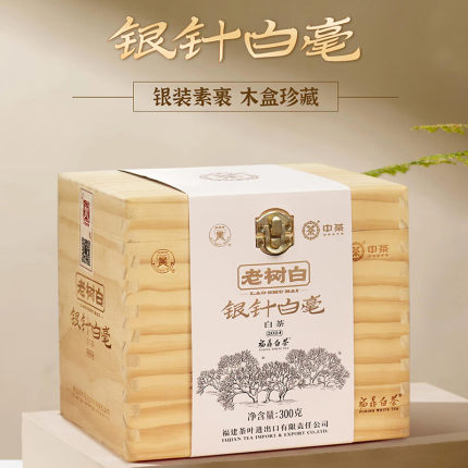 中茶蝴蝶老树白茶春茶2024年5188特级银针白毫木盒装礼袋300g