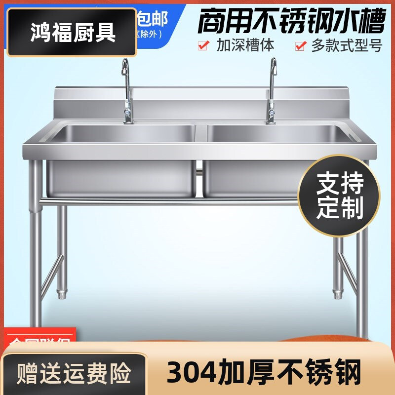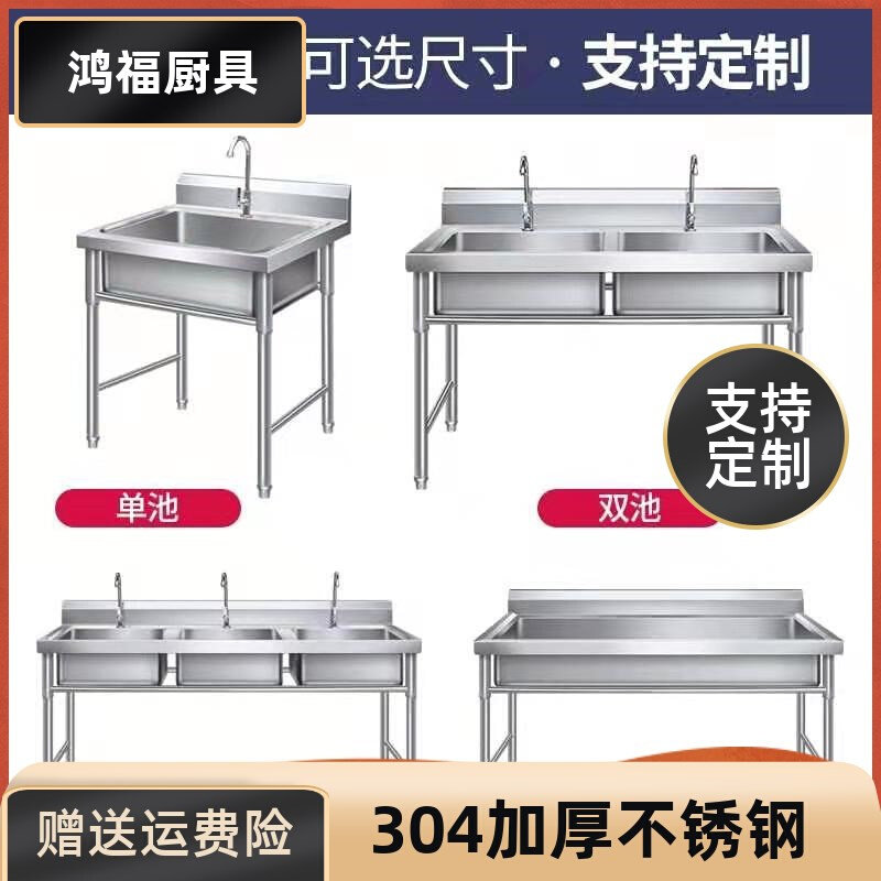 304商用不锈钢水槽单双槽三水池洗菜盆洗刷洗碗池厨房饭店家用