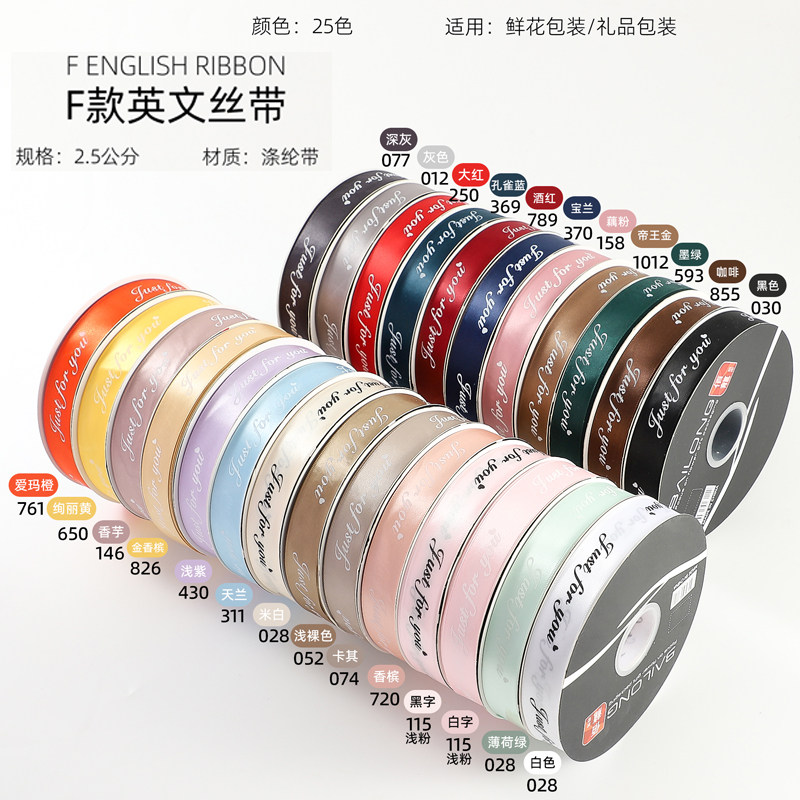 100码大卷定制2.5cm英文缎带鲜花束蛋糕包装丝带水果礼盒礼物蝴蝶