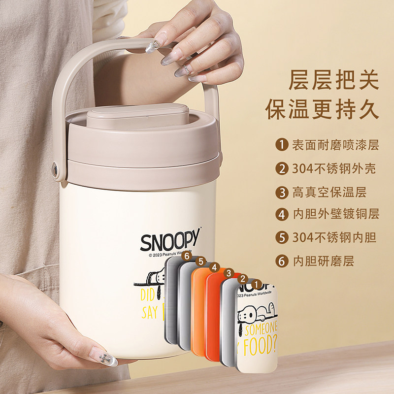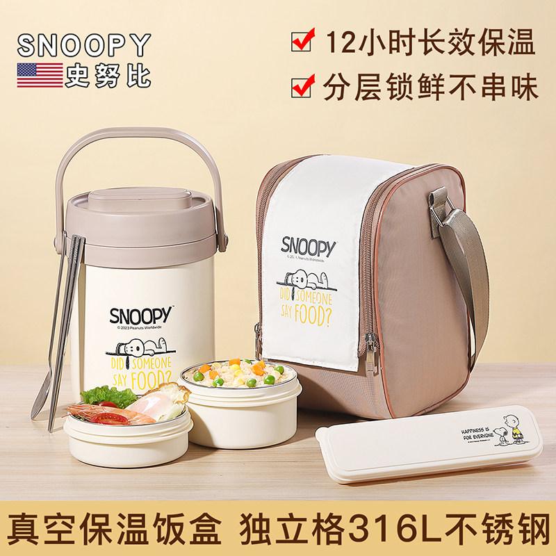 史努比饭盒2024新款真空超长保温上班族大容量学生多层不锈钢餐盒
