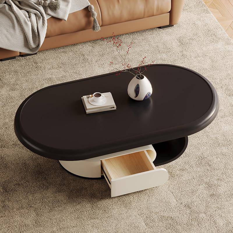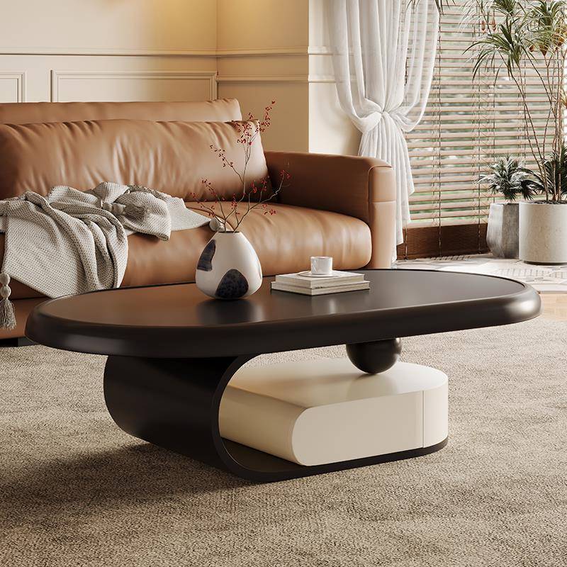 奶油风实木茶几客厅侘寂中古风创意网红椭圆形设计师现代简约岩板