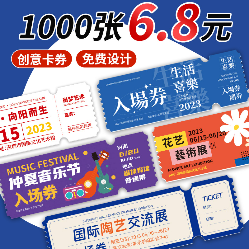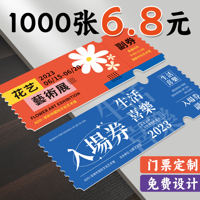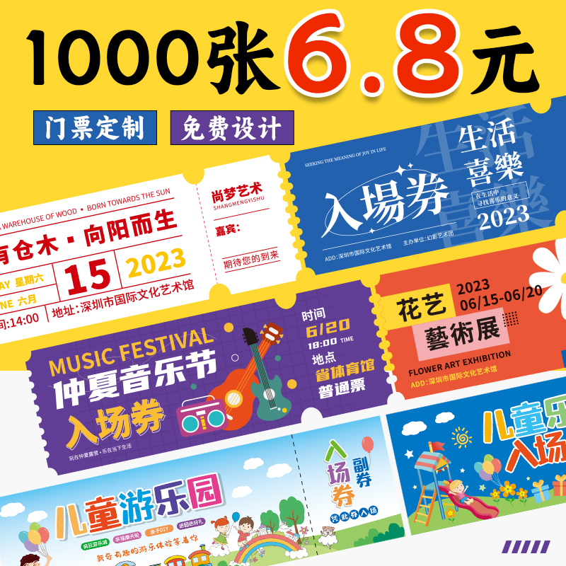 门票定制入场券抽奖券水票游乐场优惠券代金券宣传卡片体验卡演唱会门票打印纪念票根婚礼邀请函飞机票手撕