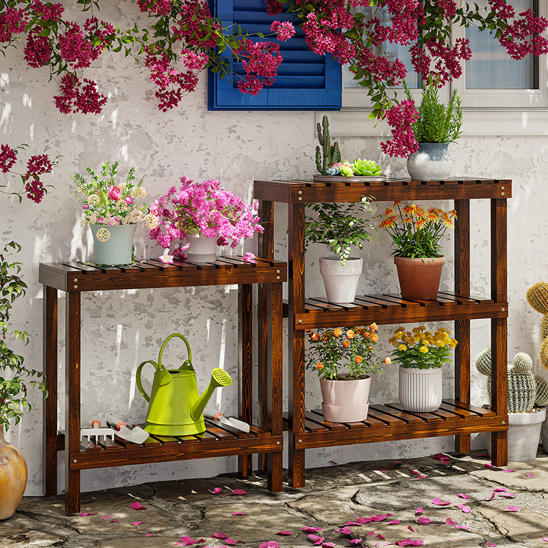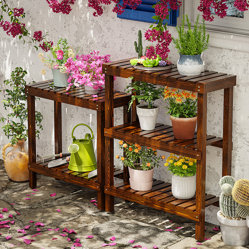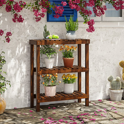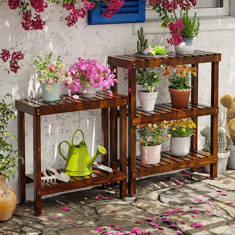户外防腐木花架子多层落地式阳台室内外多肉黄金葛置物架二层花盆