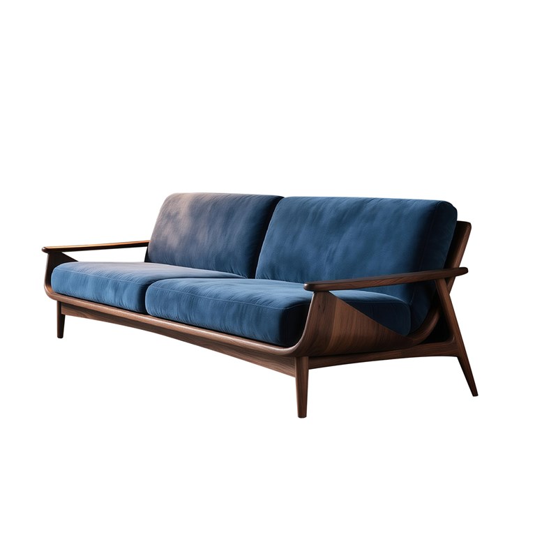 新中式黑胡桃木沙发直排布艺现代简约家具轻奢双人三人位大小户型