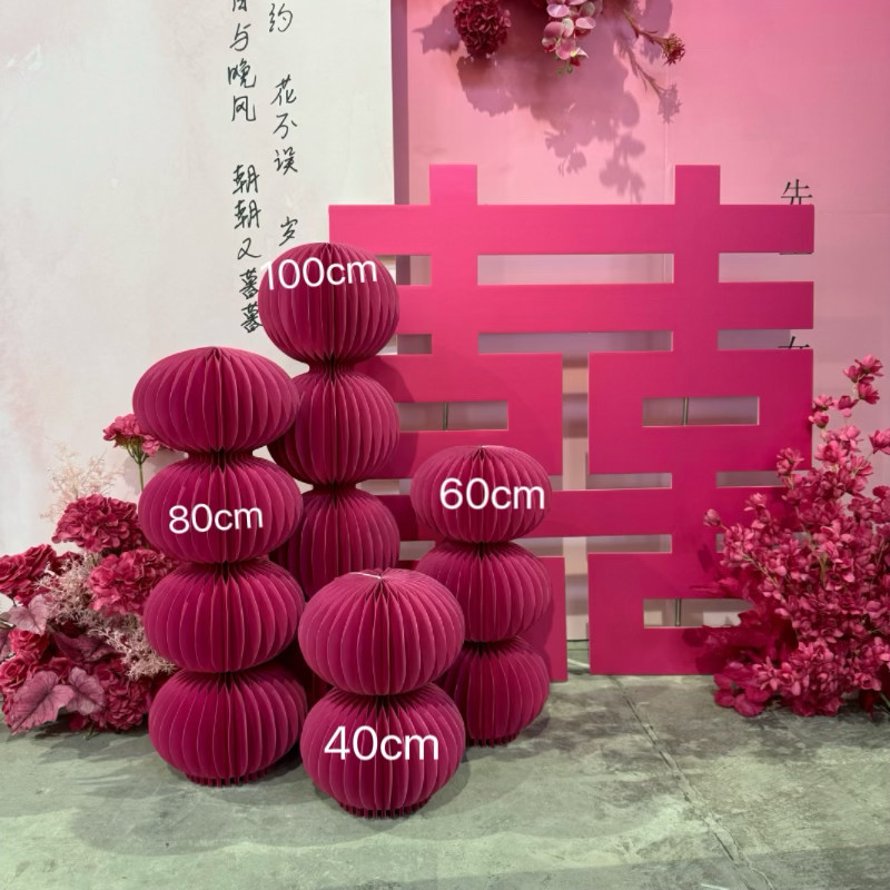 婚庆折叠纸质灯笼中式婚礼迎宾区甜品台罗马柱圆柱订婚宴路引柱子