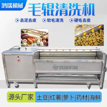 商用土豆萝卜猪头毛辊清洗去皮机根茎类蔬菜贝类海鲜毛辊清洗设备