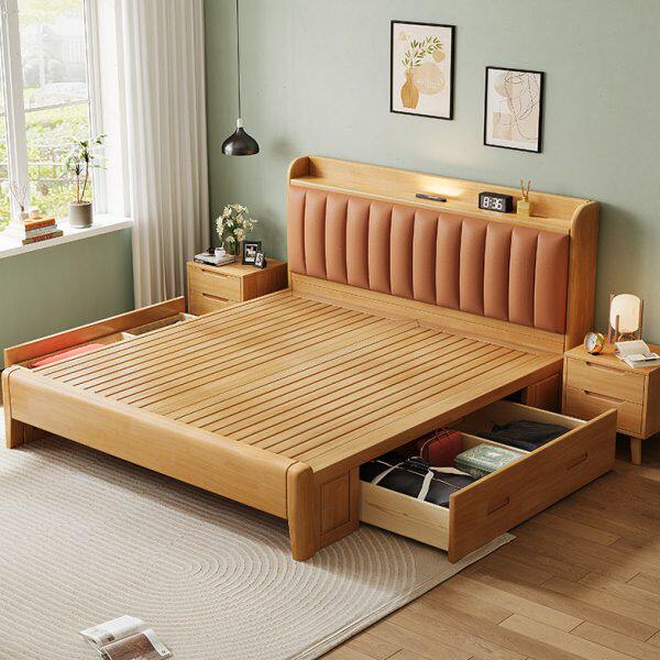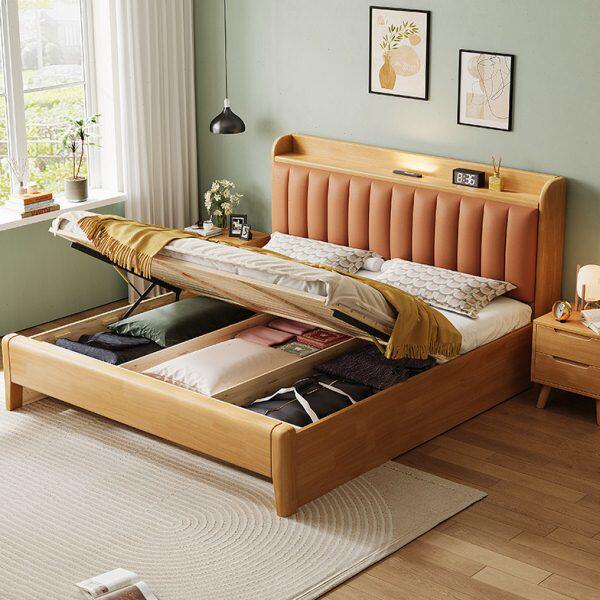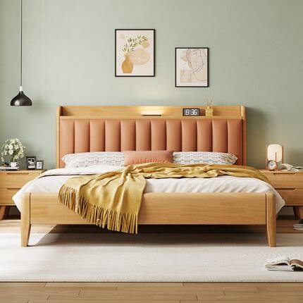 北欧带婚床原木实木床主卧双人床m软包储物现代简约1.5夜灯1.8米