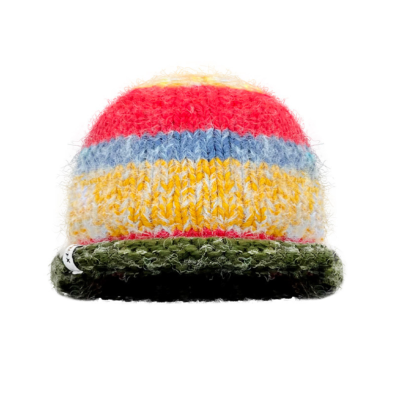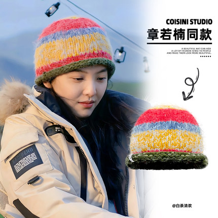 章若楠同款可爱拼色卷边针织帽子女秋冬天学生小众彩色条纹毛线帽