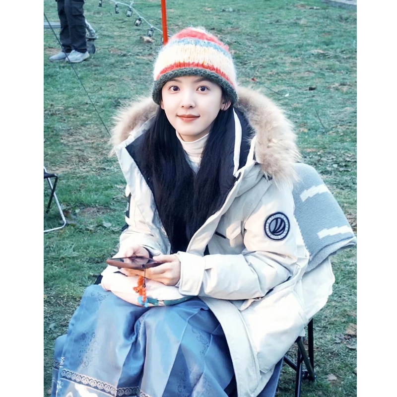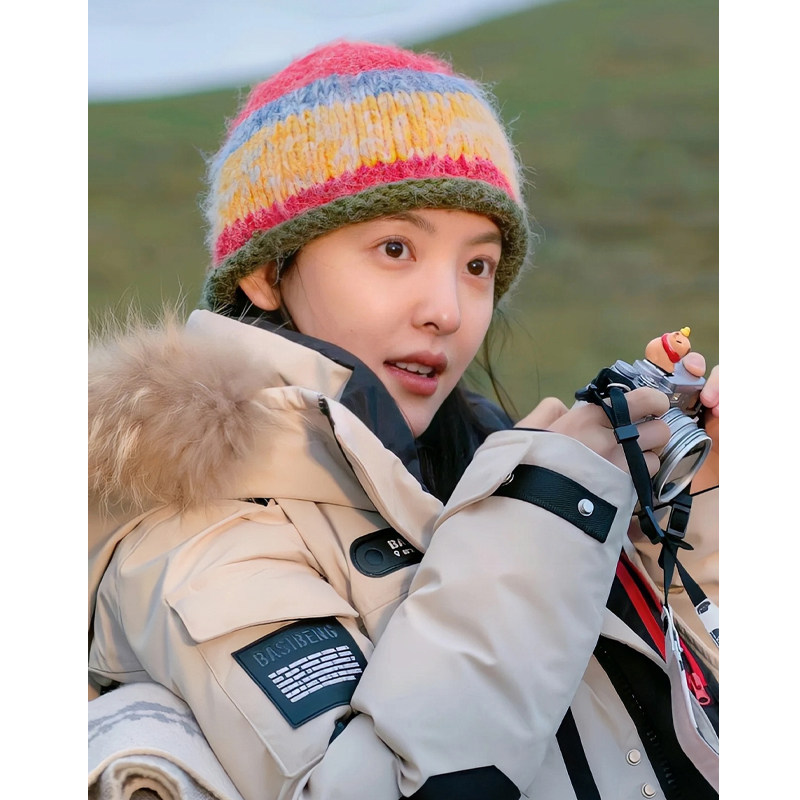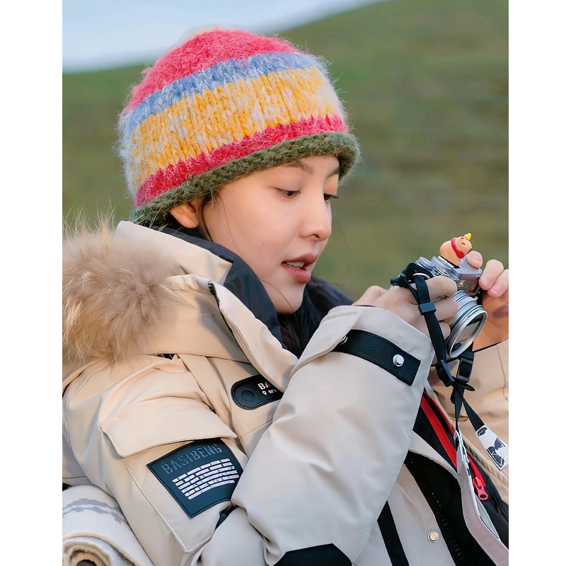 章若楠同款可爱拼色卷边针织帽子